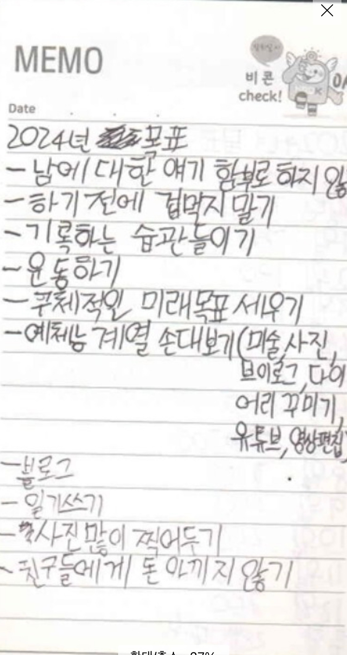 특성화고 졸업생의 메모를 봅니다. 이렇게 쓰면 목표가 선명해지고, 선명해지면 가 닿기 쉽겠지요.