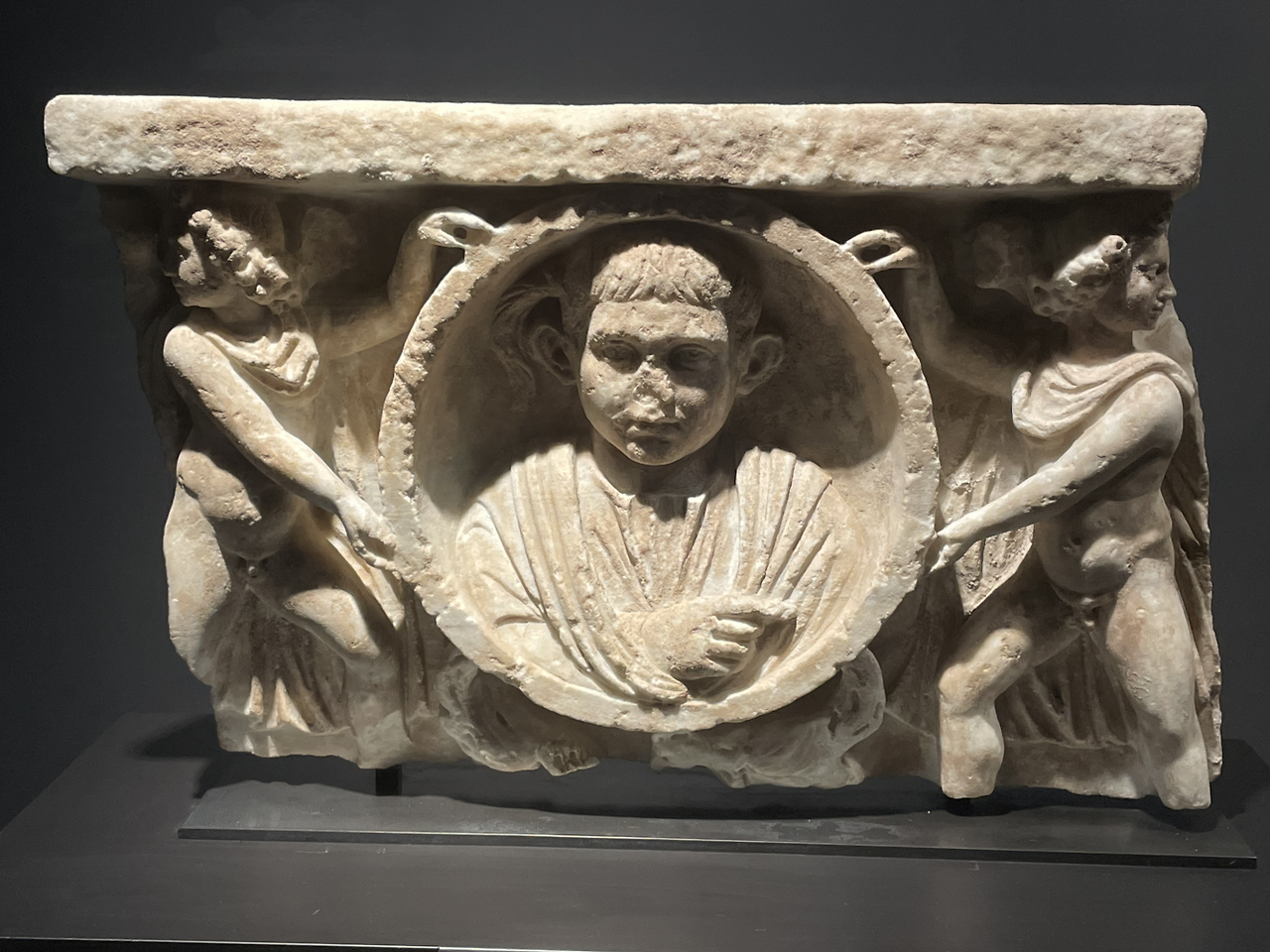 * "소년의관” Sarcophagus with Bust of a Boy/ 대리석 석관 파편 로마, 2~3세기 빈미술사박물관 소장/ (국립중앙박물관 “그리스가 로마에게 로마가 그리스에게” 2023. 06. 15~ 2027. 05. 30 고대그리스로마실) 전시 참조