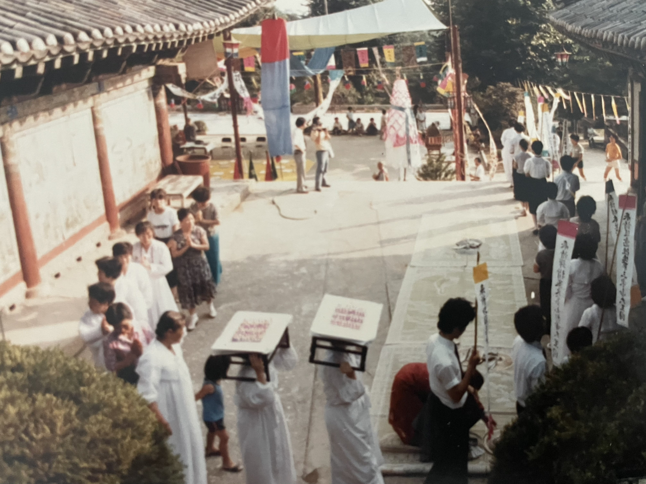 신촌 봉원사쯤이었겠지요. 햇볕이 무자비하던 날, 스님들도 머리에 수건을 얹고 계십니다. 할머니의 위패를 모신 가마가 지나갑니다. 염불 소리 속에서 가문의 며느리들은 작은 상에 경문을 얹고