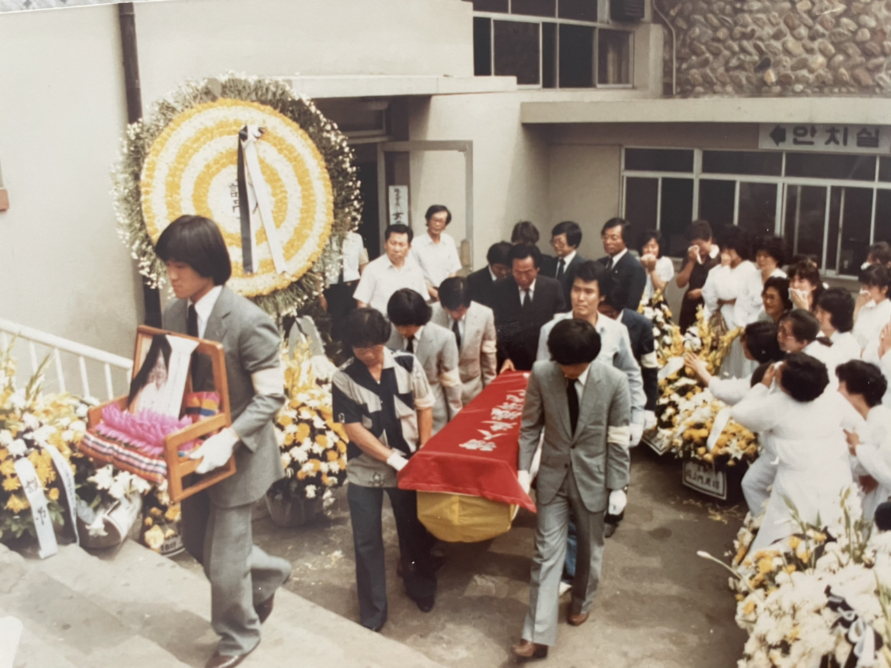 그리고 1983년 6월 17일, 할머니의 장례식 사진입니다. 장례식장에 모인 자손들이 아주 많습니다. 슬픔을 나누는 일이란, 어쩌면 그런 걸까요. 한 사람이 떠난 자리를, 여러 사람이 감싸안는 일. 슬픔은 나눌 수 있는 걸까요? 기쁨을 나눈다는 말은 있는데,