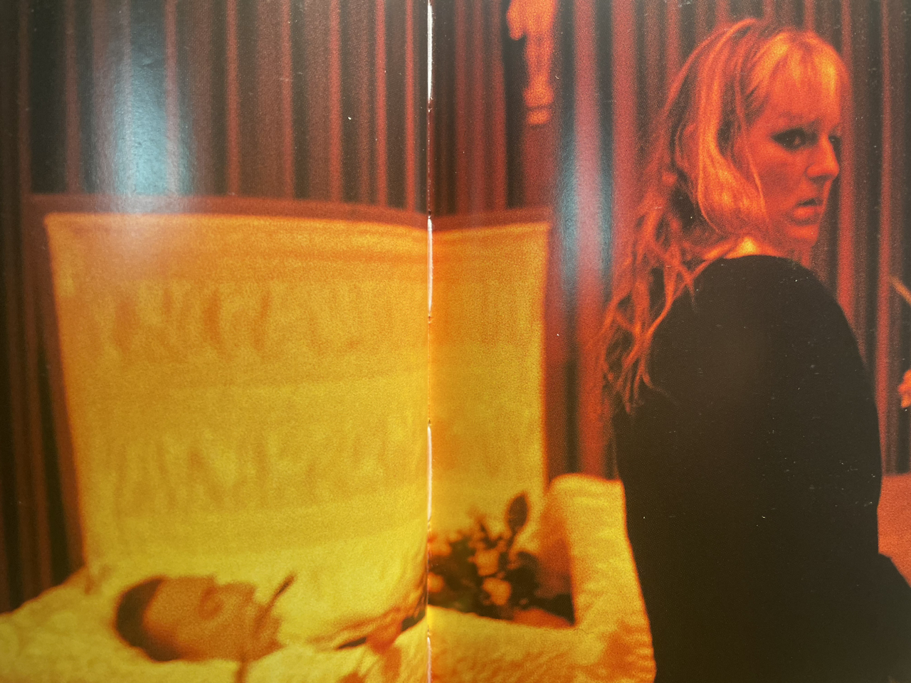 그다음 사진은 <1989 빗토리오의 관 앞에 선 쿠키, 뉴욕, 미국>입니다. "몇 개월 간격으로 차례로 죽어 간 쿠키와 빗토리오의 비극은 골딘을 대단히 상심시킨다. 사진에서도 급진적인 변화가 나타난다. 한 시기가 슬픔과 상실, 그리고 행동에서의 커다란 변화로 각인되면서 끝나고 있었다. 그리고 보다 사려 깊고 내성적인 접근을 시도하는 새로운 시기가 시작되고 있었다. (…)"