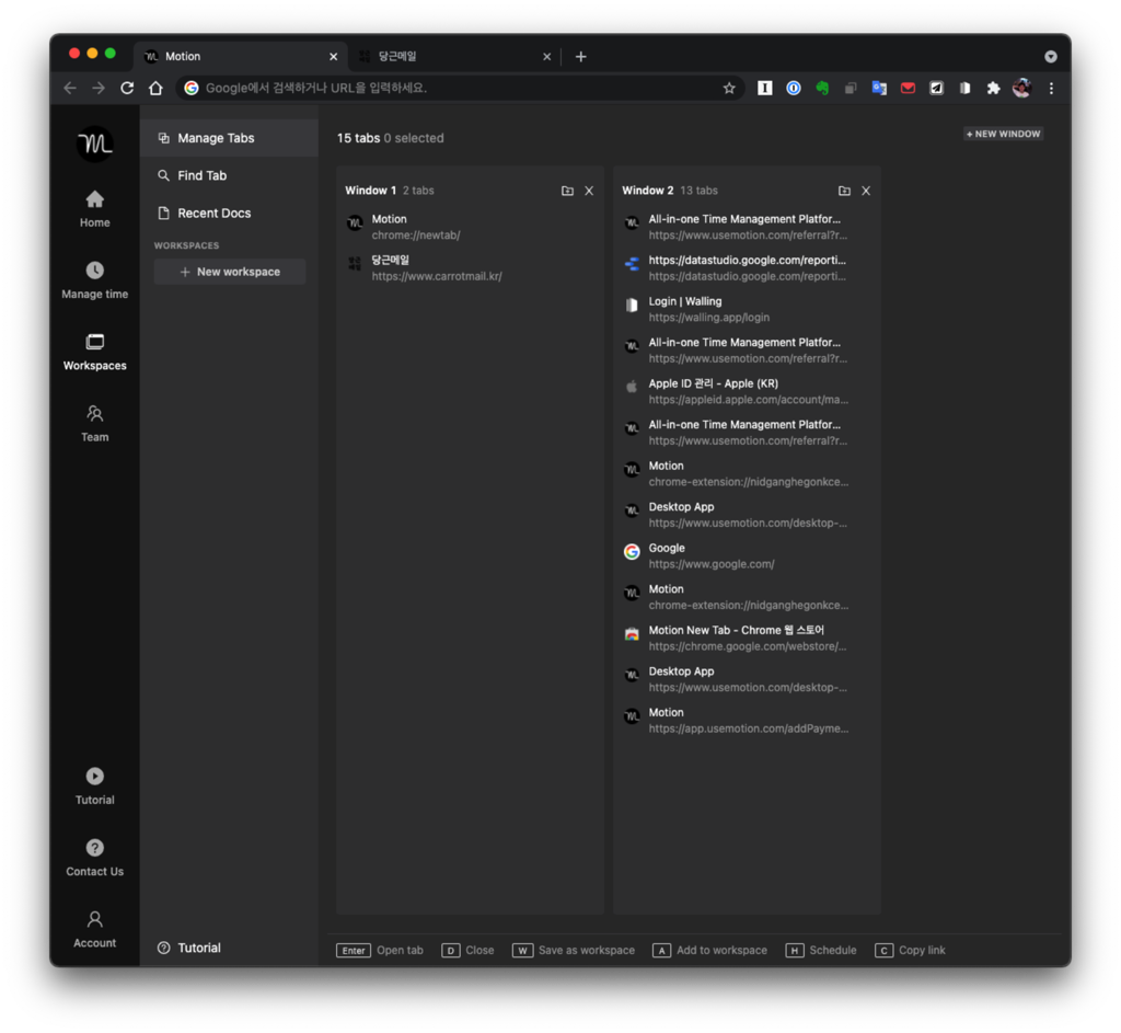 사용 중인 크롬 브라우저의 탭을 저장하고, 관리 할 수 있는 기능
