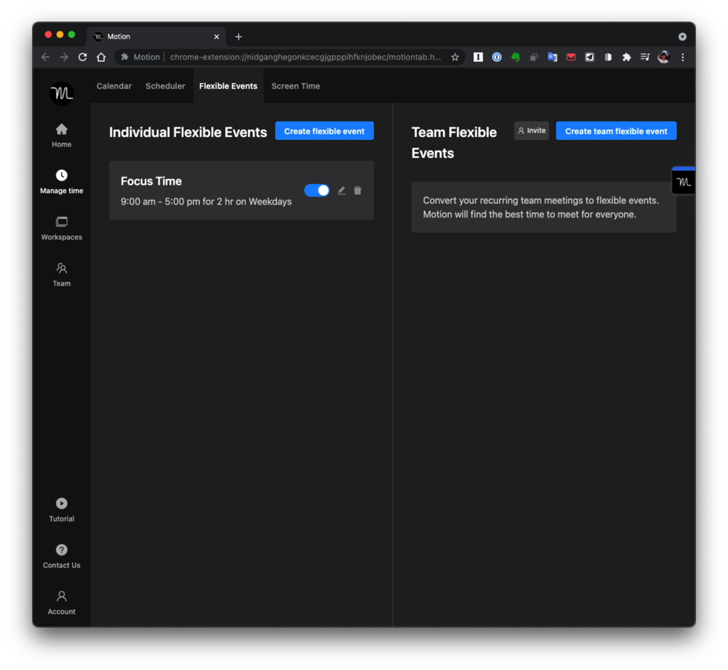 기본적인 캘린더 기능 외에도 Motion 만이 가지고 있는 독특한 기능들이 있는데요. 바로 크롬 확장 프로그램이라는 점을 적극 활용하고 있다는 점 입니다.