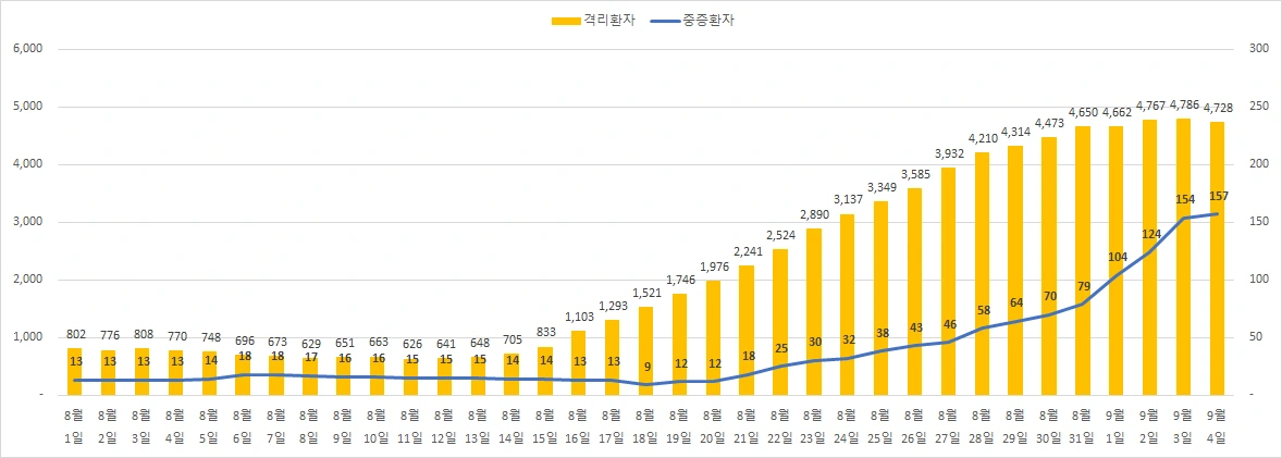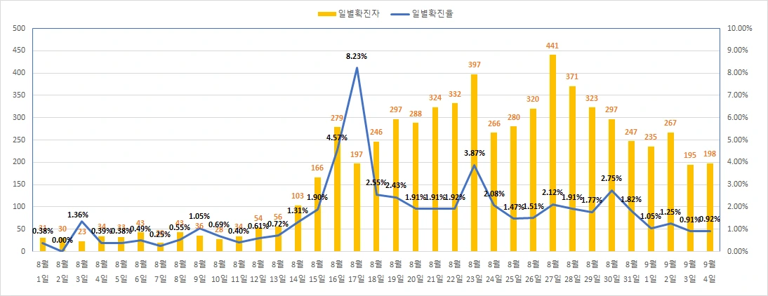 9월 4일 코로나 확진자 198명