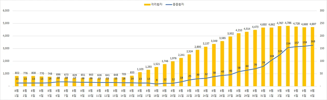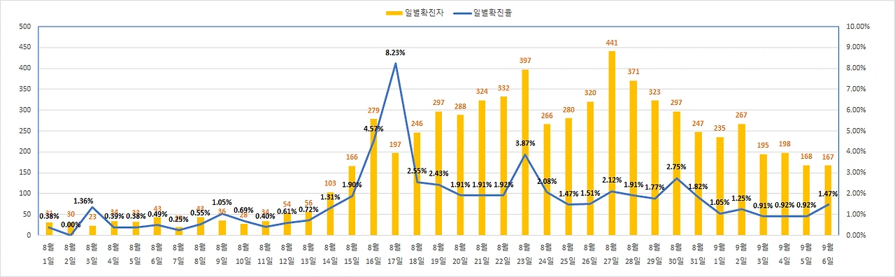 9월 6일 코로나 확진자 167명