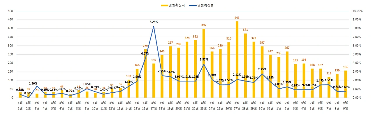 9월 9일 코로나 확진자 156명