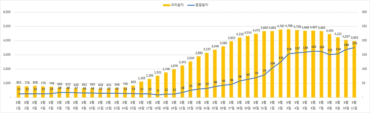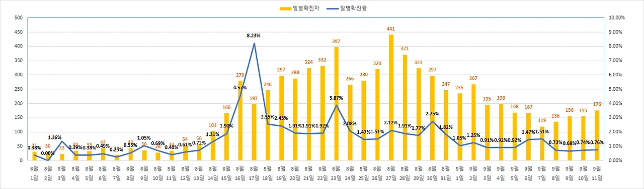 9월 11일 코로나 확진자 176명