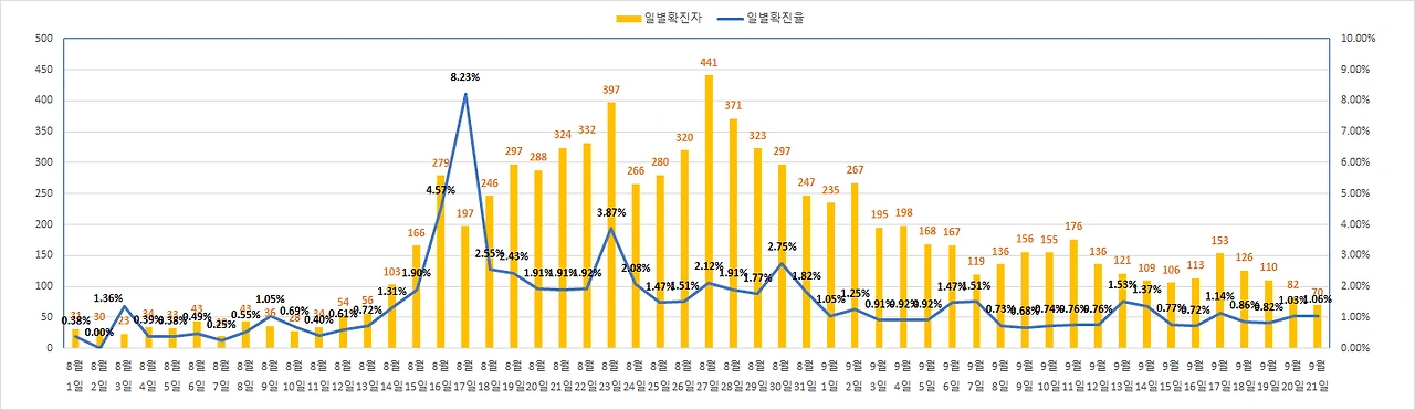 확진자 수와 의심환자 수가 8월 14일 이전으로 돌아온 것은 좋은 신호로 보입니다.