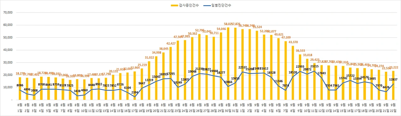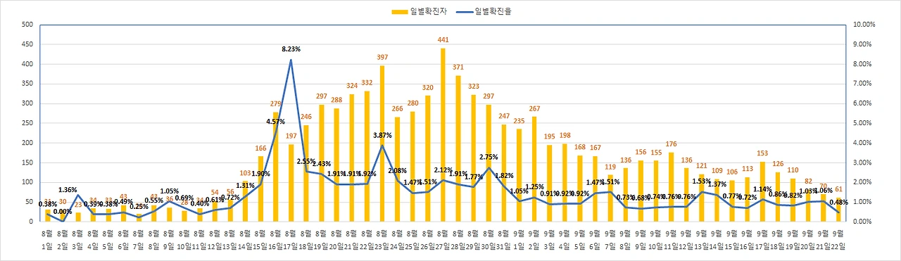 9월 22일 코로나 확진자 61명