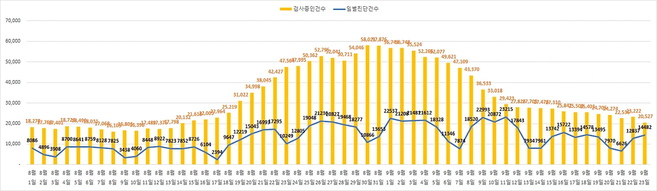 - 진단건수 14,482건(+1,645건), 확진율 0.76%(+0.28% P)