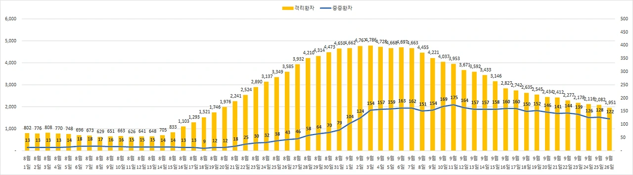 9월 26일 코로나 확진자 61명