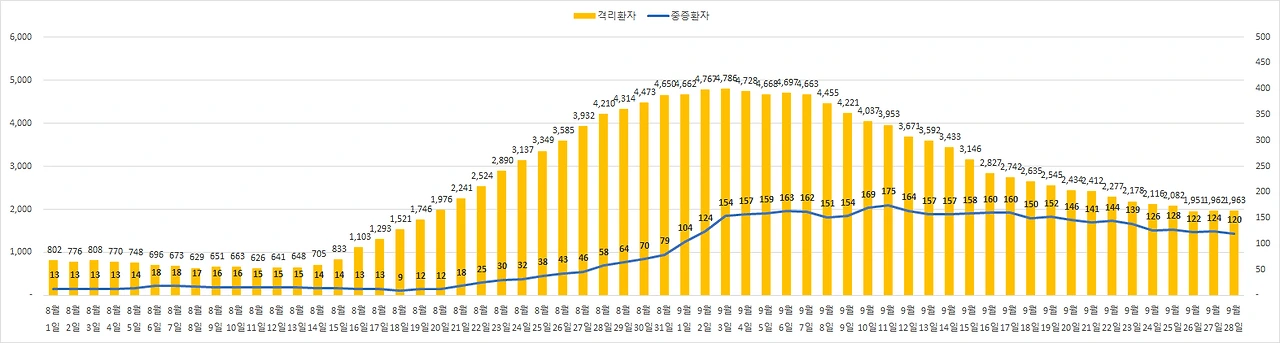 최근 사망자가 다시 늘어나고 있습니다. 지난 2주간 중증환자가 40명 감소하였는데, 이중 39명이 사망으로 인한 감소였습니다.