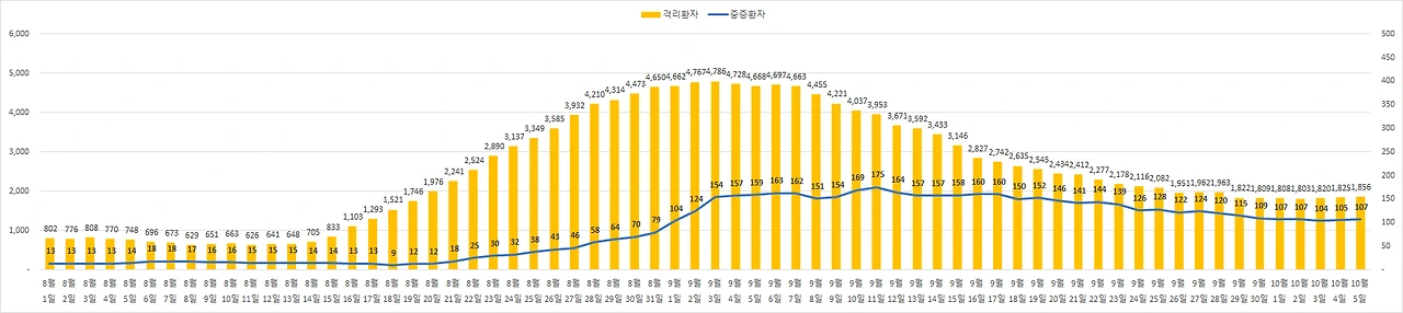 미국 트럼트 대통령이 산소치료를 받은 것으로 알려졌는데요, 국내 기준으로는 중증환자로 분류됩니다. 국내는 경증, 중증, 위중으로 환자를 분류하고 있습니다. 중증의 경우 산소 마크스 및 고유량 산소요법 치료를 받는 환자이고 위중의 경우 인공호흡기, ECMO(체외막 산소공급) 치료를 받는 환자입니다. 현재 국내 위중증 환자는 107명으로 위중증 환자 비율은 5:5 정도로 유지되고 있습니다.