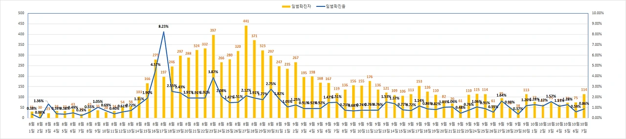 - 진단건수 13,239건(+599건), 확진율 0.86%(+0.25% P)