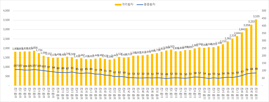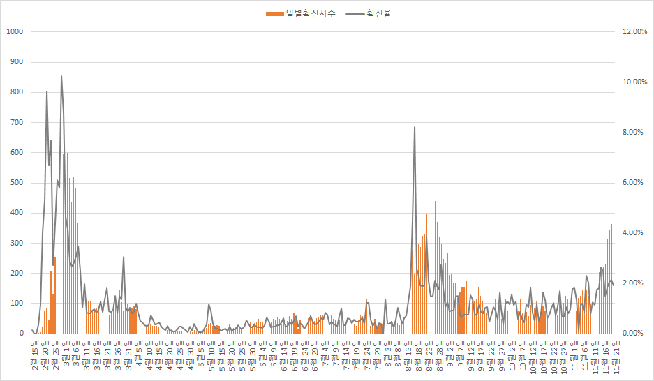 이제 2.5단계 기준인 전국 4-5백 명 감염이 눈앞으로 다가왔지만, 아직도 1.5단계에 머물러 있다는 것은 문제가 심각해 보입니다. 국민들의 방역수칙 준수도 중요하지만 정책당국도 정책 시행에 대한 원칙 준수가 필요해 보입니다. 불과 얼마 전 발표한 기준에서 3백 명 이상은 2단계로 설정해 놓고 등급 상향을 하지 않고 있는 것은 흡사 개인이 생업을 위해 개인 방역수칙을 지키지 않고 핑계 대고 있는 상황과 비슷해 보입니다. 현재 정해 놓은 기준이 느슨한 것도 리스크인데 원칙을 따르지 않는 것은 리스크를 가중시키고 있습니다.