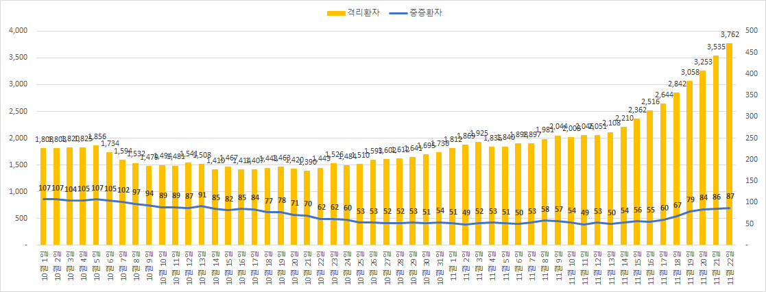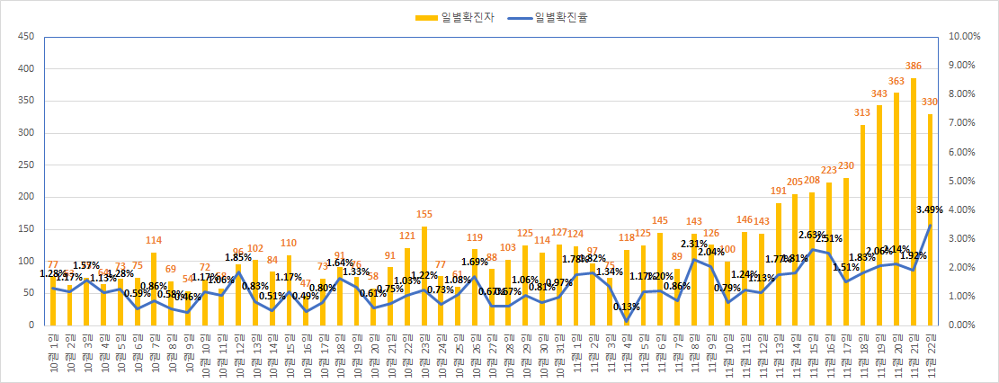11월 22일 코로나 확진자 330명