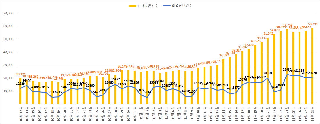 현재 검사대기건수로 보면 Test와 Trace의 과부하 정도가 가장 높다는 것을 보여주고 있고, 사망자수도 높은 수준으로 Treat 측면에서도 과부하가 시작될 것으로 예상됩니다. 문제는 이제 3차 확산 초기라는데 있습니다. 개인적으로는 내일 발표할 새로운 거리두기에서 전국 2.0단계와 수도권 2.5단계가 필요해 보입니다.