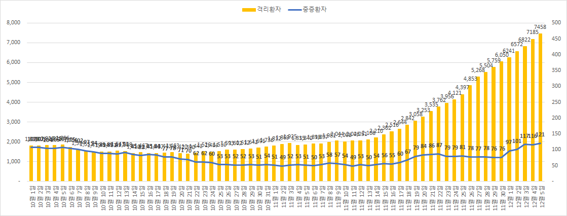 국내는 확진자 증가를 거리두기 정책으로 조절할 수 있는 상황이었지만 최근 1-2개월의 상황으로 보면 거리두기 시행 전략에 문제가 있다고 보입니다. 좀 더 방역 중심으로 수정이 필요해 보입니다.