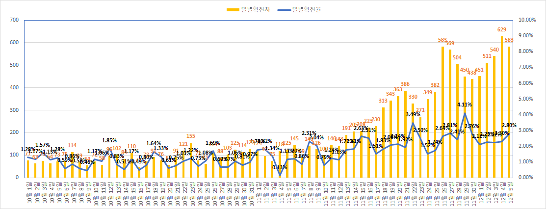 - 진단건수 20,836건(-6,459건), 확진율 2.80%(+0.50% P)