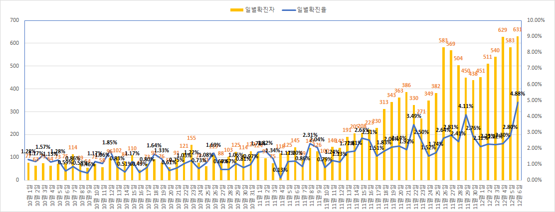 12월 6일 코로나 확진자 631명