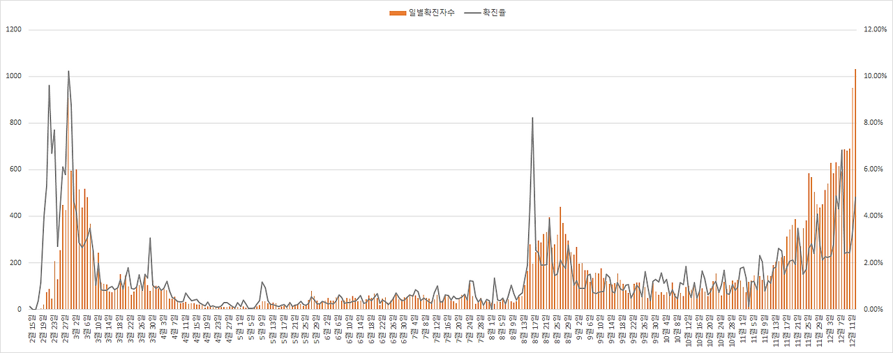 12월 13일 코로나 확진자 1,030명
