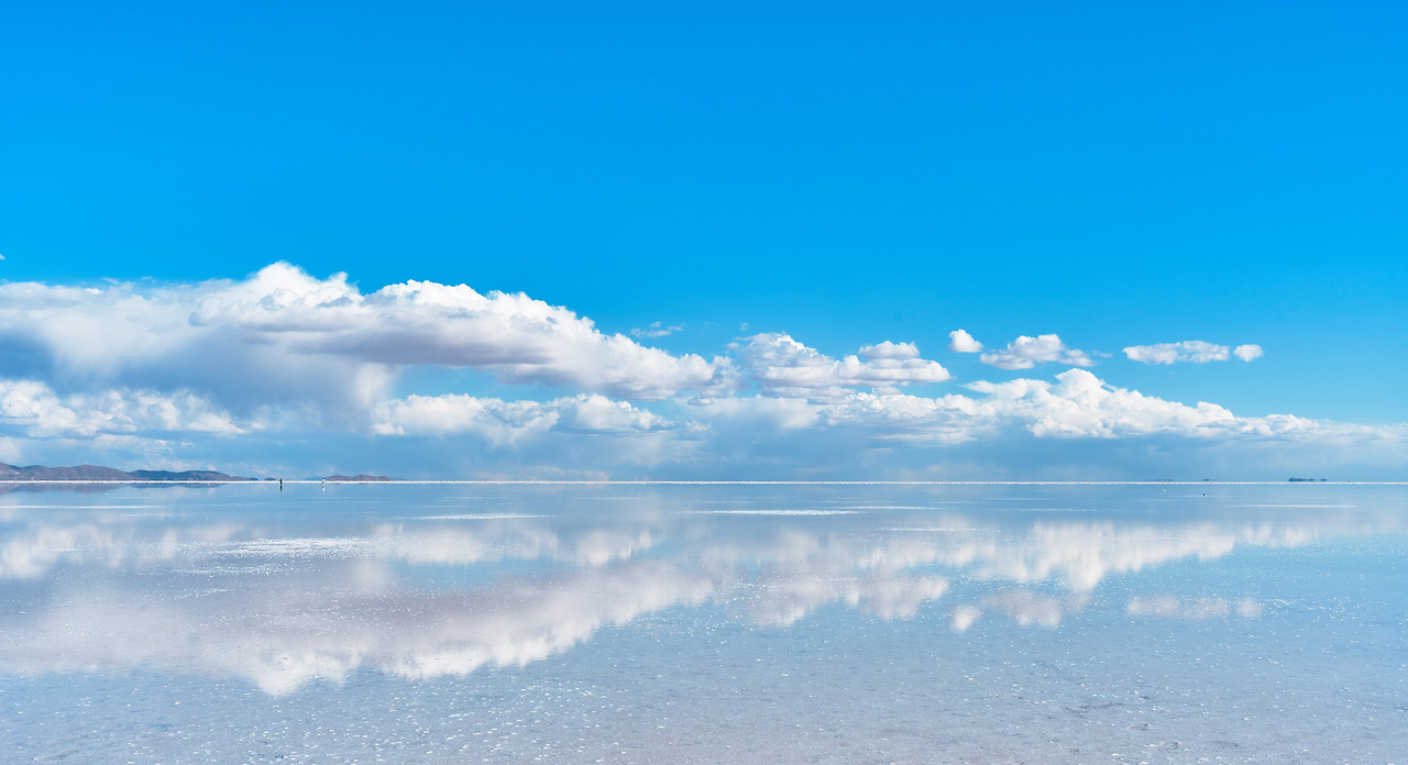 세상에서 가장 큰 거울이라 일컬어지는 볼리비아의 우유니 소금사막,