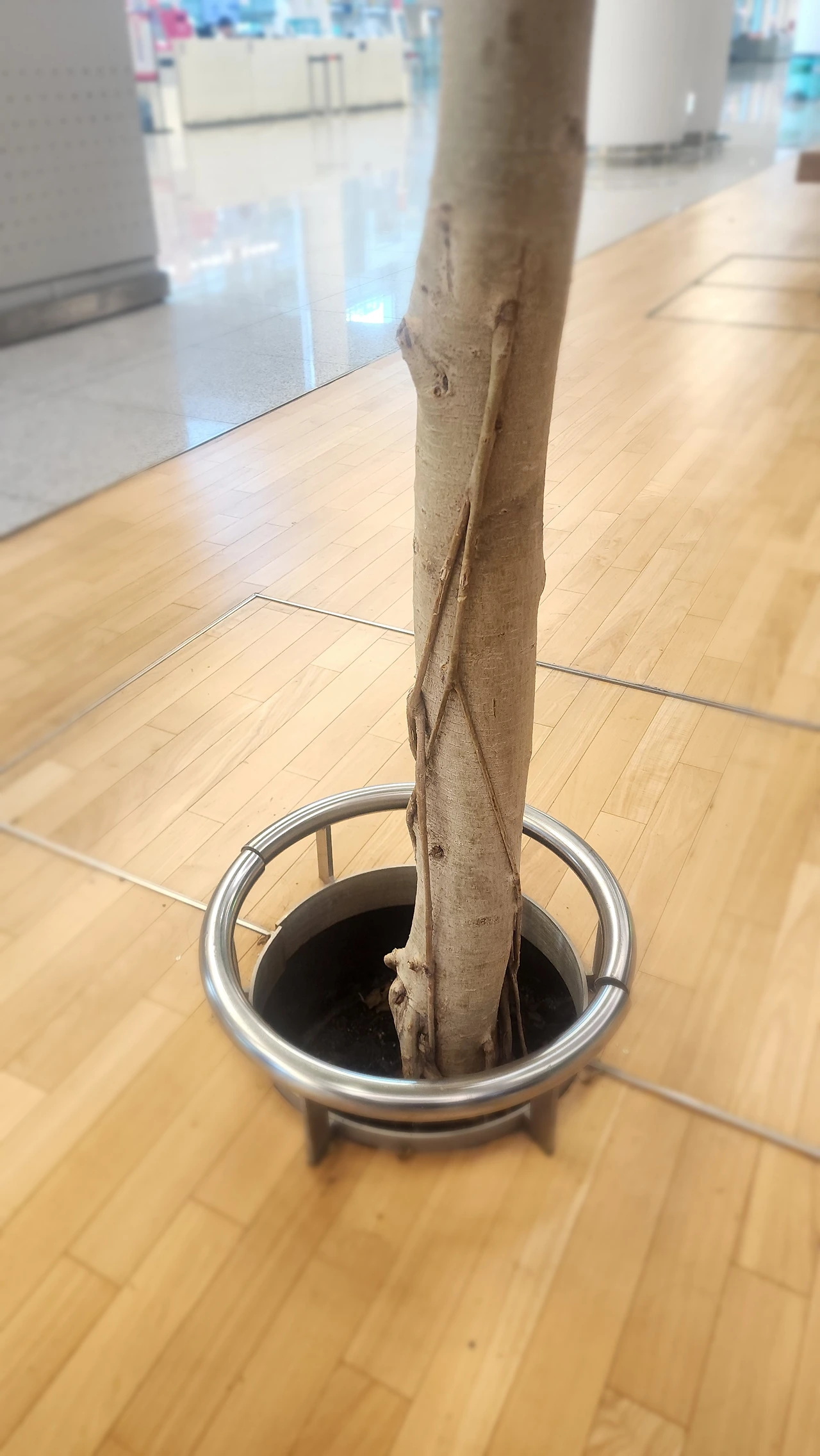 공항 내 조경수들 주변으로 테두리가 둘러져 있습니다. 수목보호 및 캐리어가 끔은 꼬맹이들이 의자처럼 저런 곳에 앉아서 머물기도 하고요. 그런 에 의한 손망실 보호일 수도 있고요.
