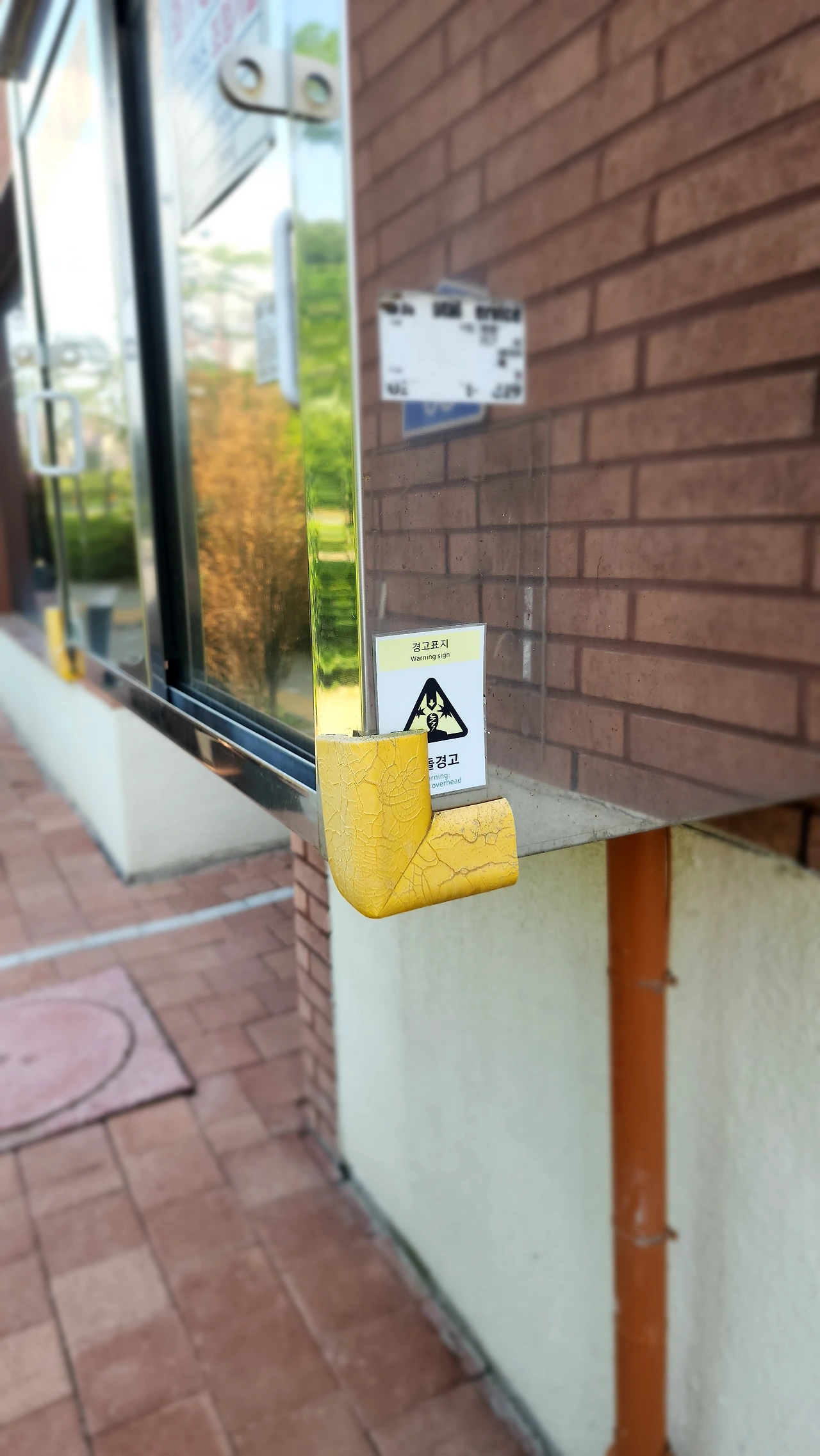 무심코 지나치다가 모서리에 부딪쳐 다칠 수 있습니다. 물론 수많은 사람들이 모서리에 부딪쳐서 이미 많은 클레임을 했을 수도 있습니다. 아니면 시설물을 설치하고 미리 위험요소라고 생각해서 사전조치를 했을 수도 있습니다.