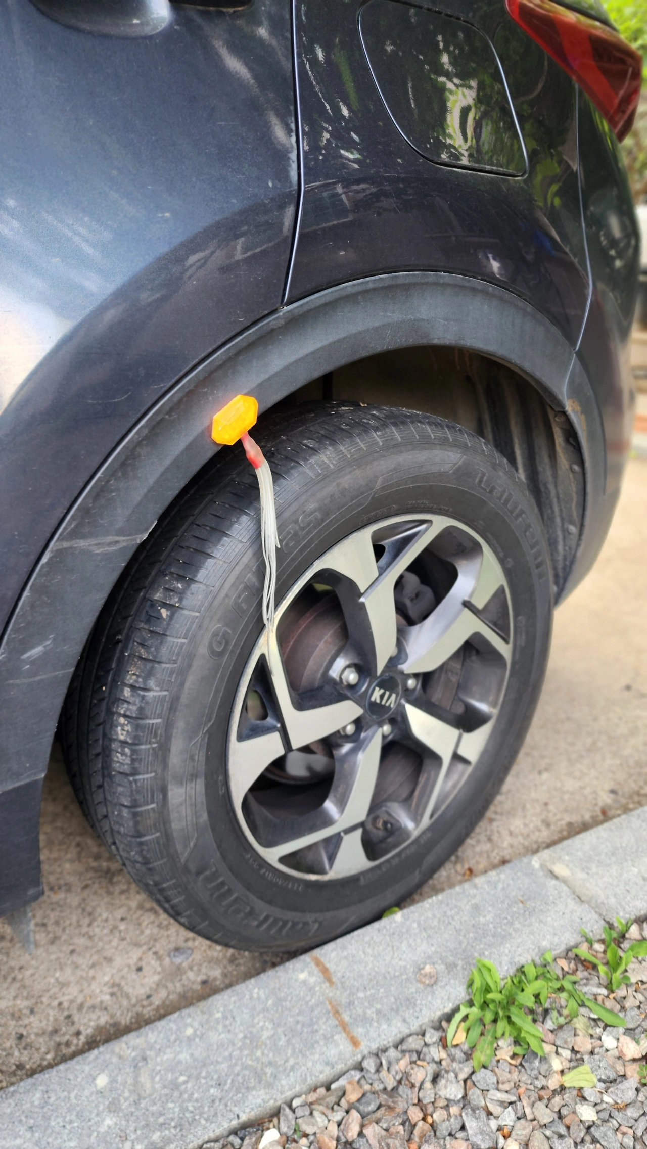 그 작은 튜브조각들이 생각난 순간이었습니다. 승용차인데 뭔가 붙어있길래 멀리서 볼 때는 뭔가 흐른 것 같았습니다. 가까이 가서 자세히 봤더니 건설트럭처럼 바퀴가 닦이도록 붙여놓은 것이었습니다. 트럭운전하실 수도 있고 트럭을 보고 붙여놓으신 것일 수도 있고요. 그 깨알디테일을 보면서 혼자 웃었습니다.