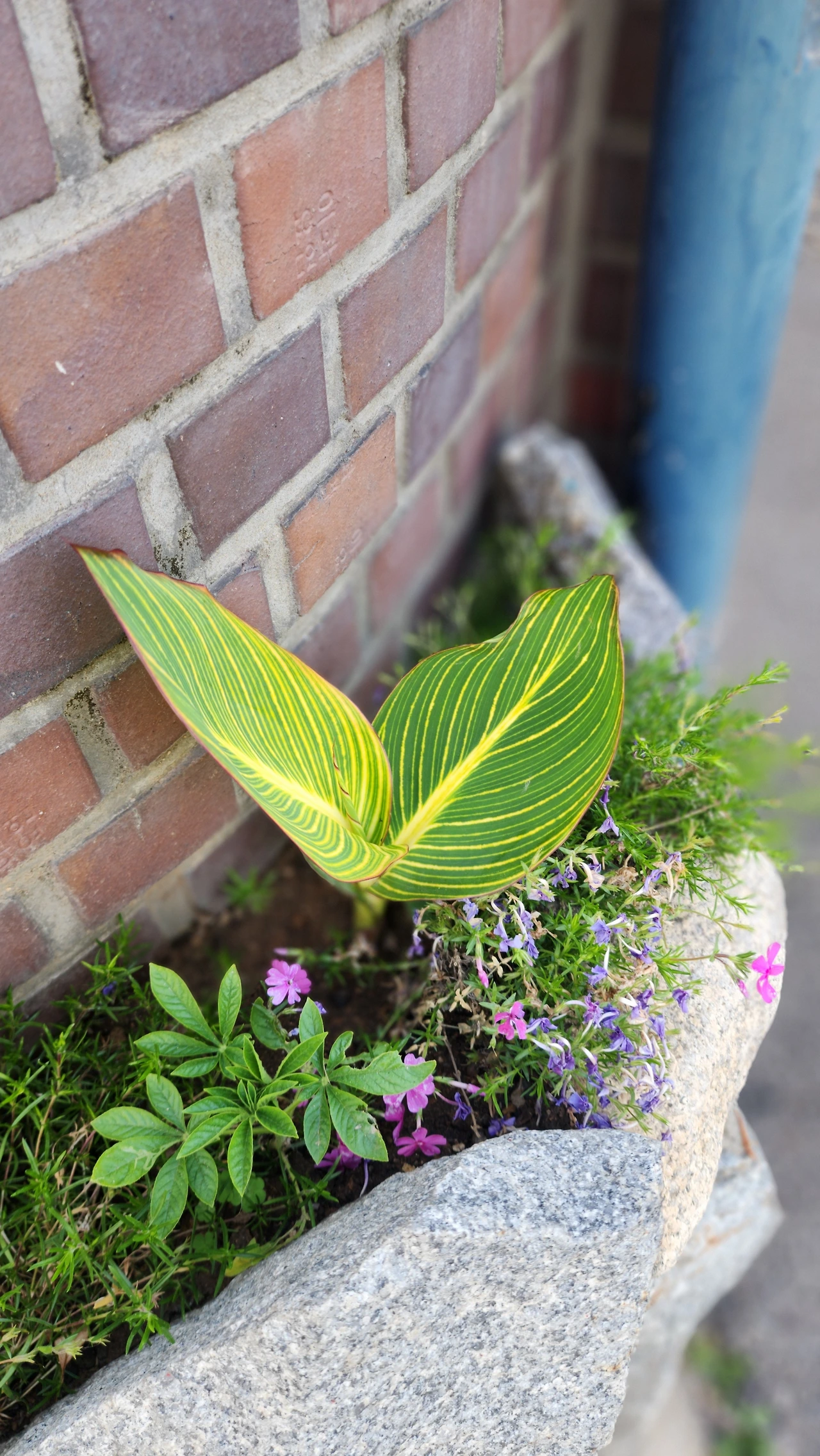 조그맣고 조그맣다는 느낌보다는 정말 쬐그만한 귀퉁이 화단이었습니다. 거기에 물감을 묻힌 붓으로 힘주어서 그린 듯한 이파리가 엄청 대단해 보였습니다. 그리고, 저런 작은 화단에서도 저렇게 거창한 이파리가 자랄 수 있다는 것을 느끼면서 쪼그만 집에서 맨날 "방이 좁아! 집에 들어가면 숨 막혀!! 언제 이사가? 각자 방은 언제 줘요?"라면서 투덜거리는 아이들에게 보여주고 싶었습니다.