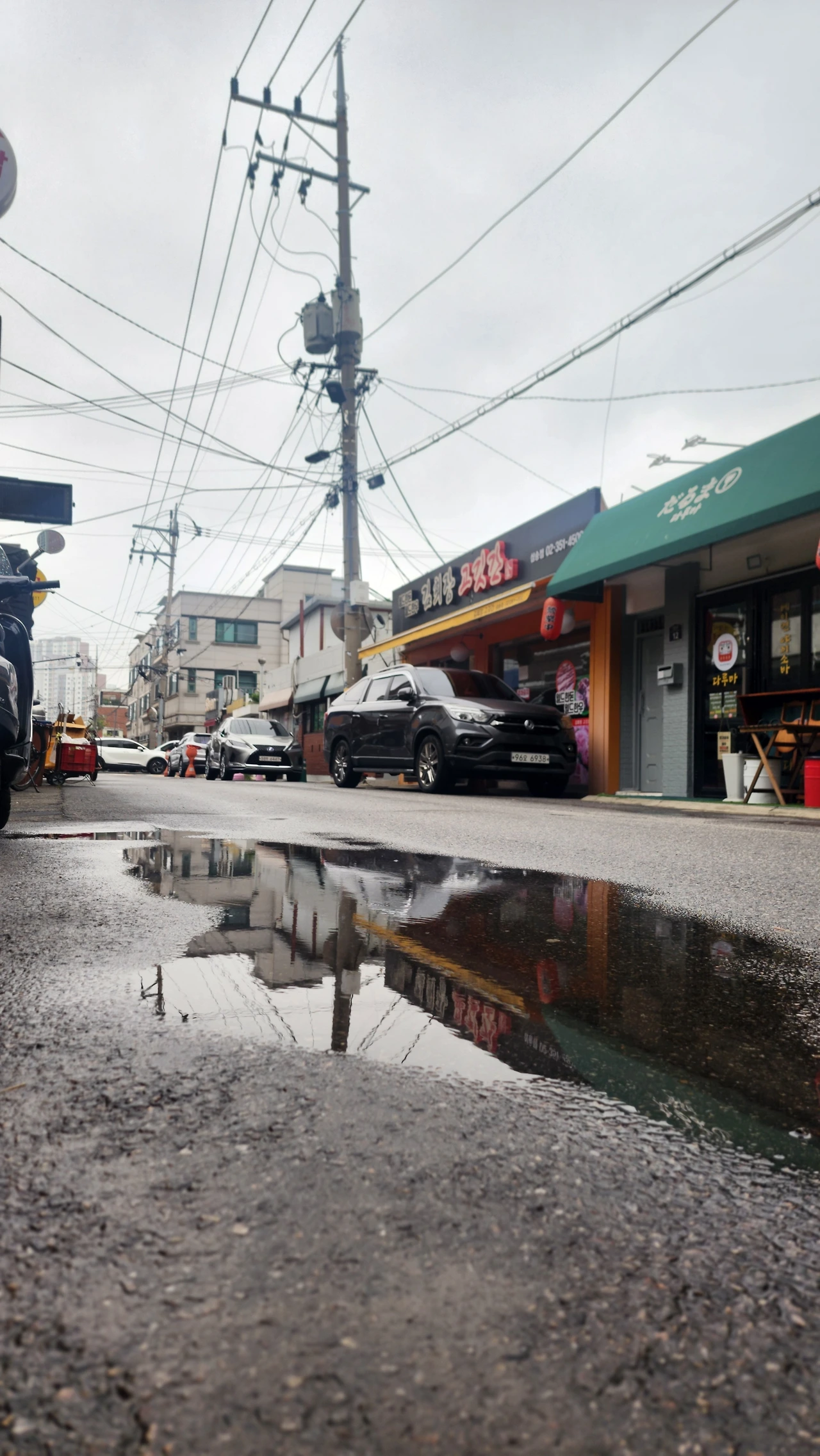 엄밀히 말하면 비가 온 뒤에 고인 물을 만난 것입니다. 그 물 위로 눈앞에 보이는 골목의 건물들이 그대로 비치는 것을 보면서 뭔가 아름답다는 생각이 들었습니다.