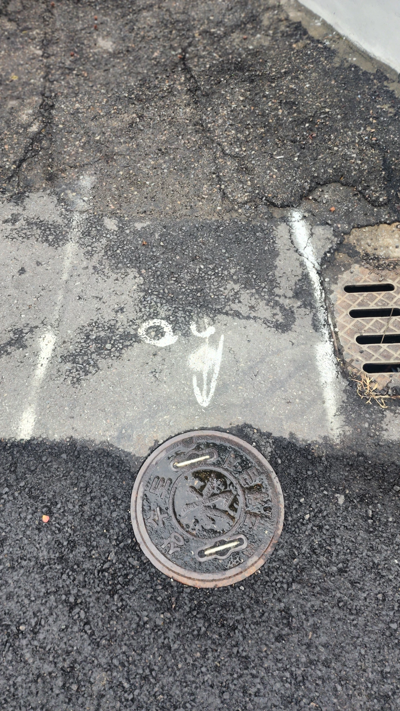 사실 저 화살표는 도로를 재포장하면서 나중에도 저 위치가 덮개가 있거나 아스팔트가 재포장되고 나면 꼭 아스팔트를 제거해줘야 하도록 서로 알려주는 표시입니다. 저 표시의 위치와 저것을 표시하는 정도의 현장일 수준이 되려고 한동안 노력했던 순간들이 기억나서 더 웃었습니다.