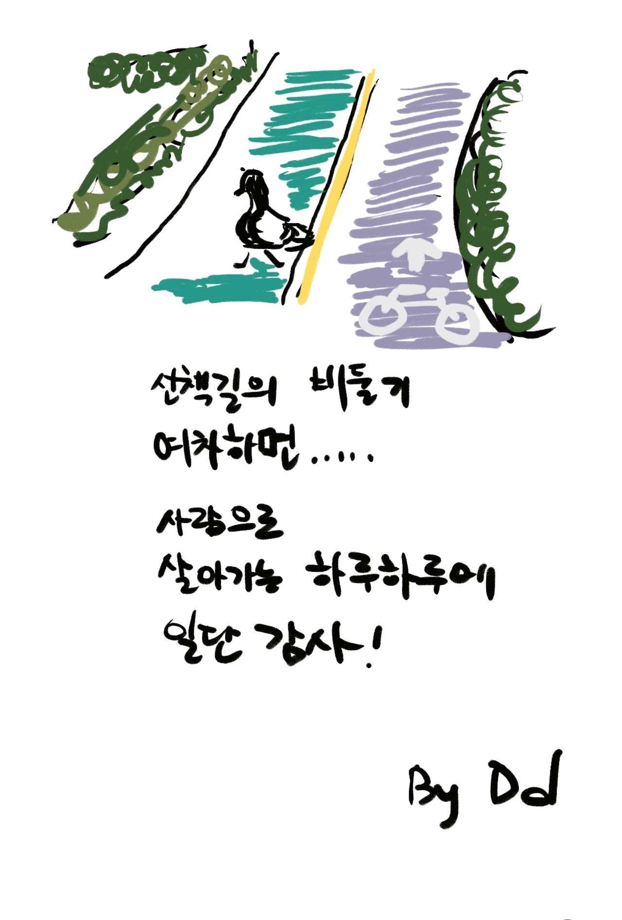 비둘기는 저렇게 있다가 방향을 갑자기 바꾼 자전거에 치일 수도 있고, 관리차량에 순간적으로 로드킬 할 수도 있습니다. 사람인 저는 위험하거나 그럴 상황이 되면 재빠르게 피하면서 목숨을 건질 수 있습니다. 이런 생각과 행동을 할 수 있다는 자체에 감사를 느낍니다. 감사를 기억하면서 미물의 생명도 아껴주겠다고 다짐해 봅니다.
