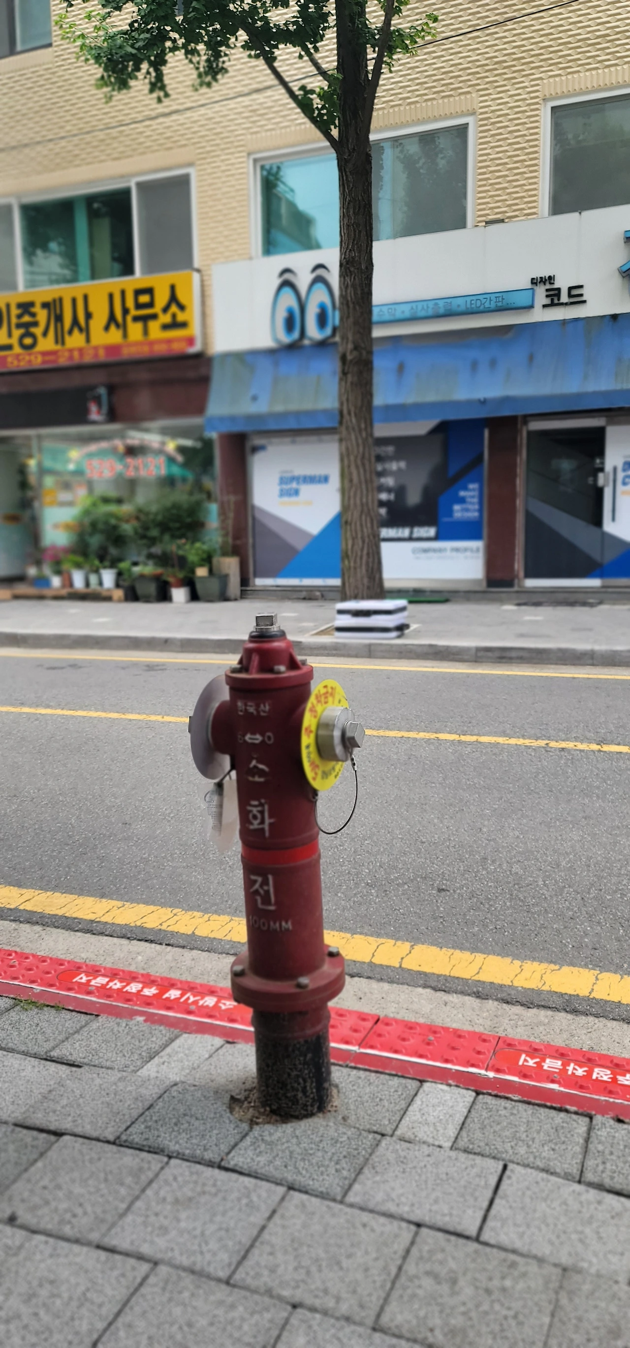 빨갛게 칠해놓은 소화전과 그 위치를 표시한 경계석과 방수구를 표시하는 부착물들 덕분에 소화전은 항상 잘 찾을 수 있습니다. 급한 화재에도 잘 사용할 수 있도록 잘 관리되고 있는 것 같고요. 방수구캡과 더불어 방수구를 표시하는 부착물이 제게는 다른 느낌으로 다가왔습니다. 상상하는 동안 잠시 그 앞에 서 있었는데 시간이 멈춘 듯했습니다. 소화전과 나만 대화하는 것 같아서 참 재밌었습니다.