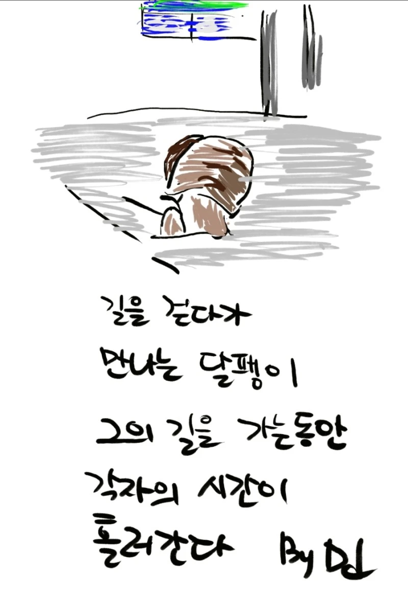여기까지입니다. 여전히 길을 걷고 한결같이 두리번거리면서 다닙니다. 생각지못한 작은 것들이나 상황을 통해 작은 감사를 느끼고 있습니다. 그 감사가 비록 "유레카"를 외치고 더 유명해진 아르키메데스처럼 거창하지는 않습니다. 다만 소소한 일상에 찌들 때도 있고 화가 날 때도 있고 서운할 때도 있는 상황 속에서 단비같은 위로가 되어줍니다. 이런 것을 함께 나눠보고자 그림에 글을 곁들여서 보고드려봤습니다. 이 프로젝트를 하는 동안 보람찹니다.
