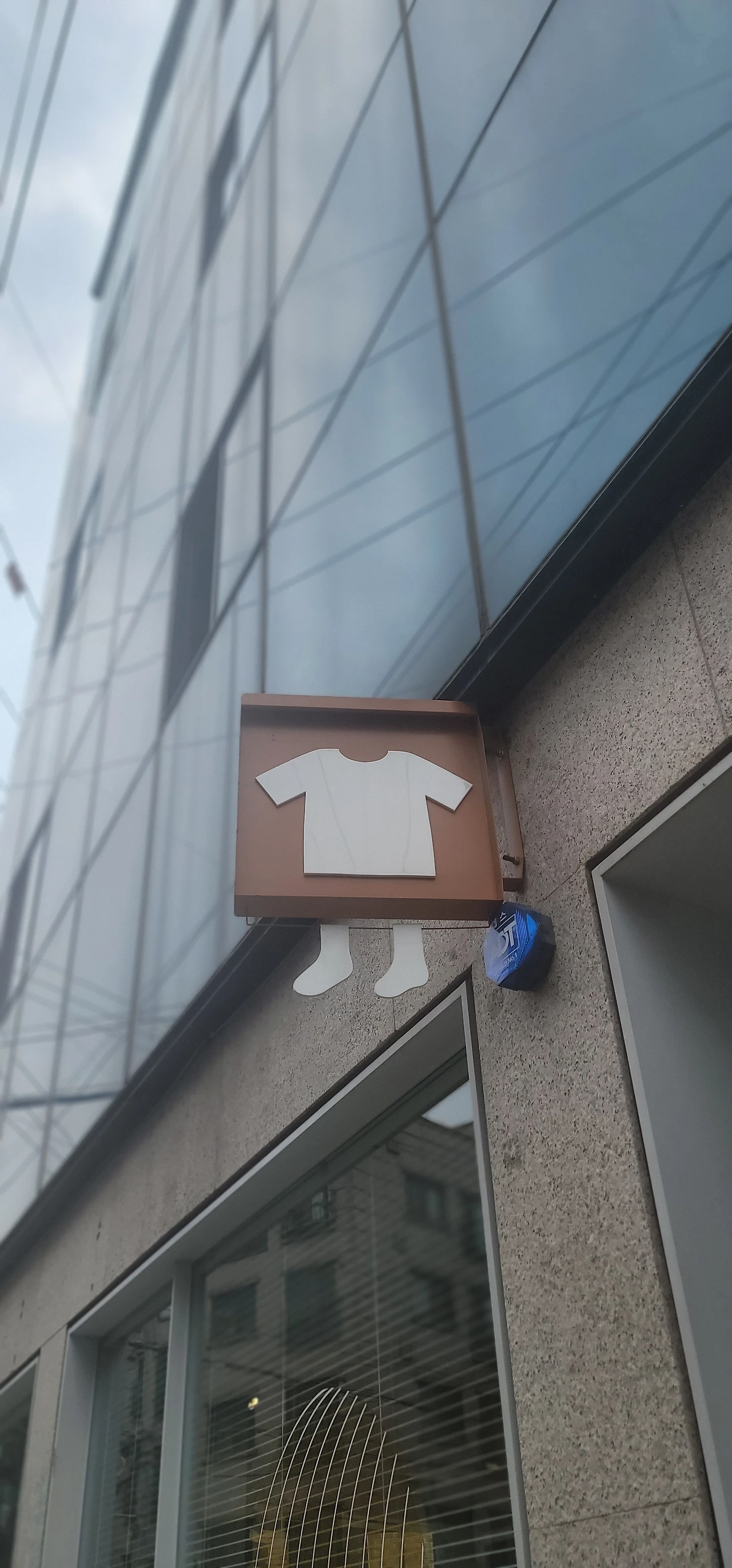 골목모퉁이에서 무심히 지나치면 안 될 것 같은 간판을 만났습니다. 앙징맞고 귀여운 간판이었고요. 옷을 붙여놔서 작은 아기용품샾인가 했습니다. 가까이 가서 제대로 봤더니 양말까지 널어놨습니다. 오랜만에 색다른 간판을 본 덕분에 밑에 계속 서서 감상을 했습니다. "위에서 아래까지"모든 것을 세탁할 수 있는 곳이었습니다. 아이디어가 톡톡 튀는 간판들을 보고 있으면 특이한 주제를 다룬 단편영화 한 편 본 느낌입니다. 덕분에 도시 속에 걸려 있는 개성 넘치는 간판들도 관심 가지게 되었습니다. 잠깐 대화해 봤습니다.