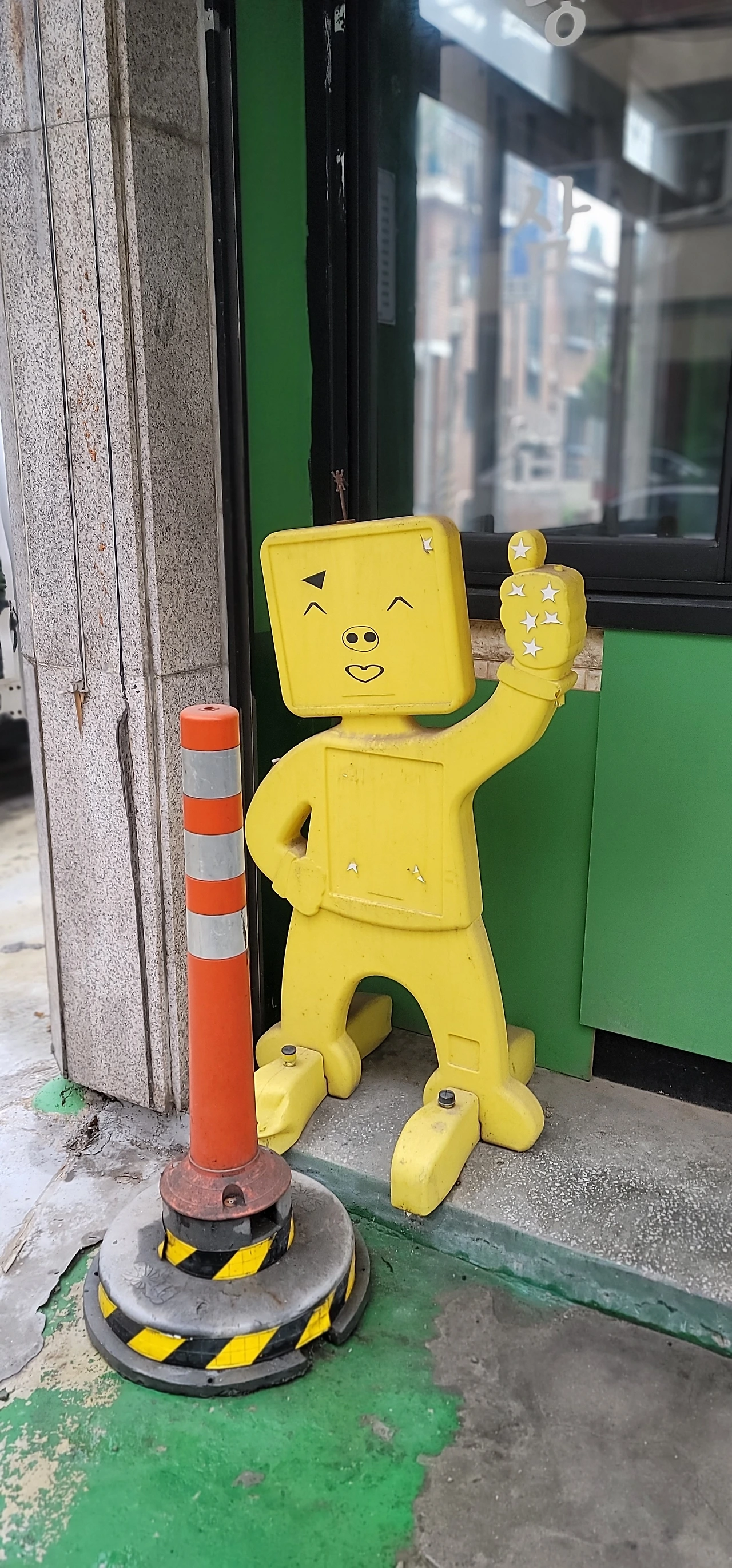 골목을 지나가다가 음식점 구석에 있는 바리케이드를 보게 되었습니다. '사장님의 위트'를 모른 척할 수 없었습니다. 꼭 제가 알아줘야 할 것 같은 압박감이 몰려왔습니다. 음식점 맛이 최고인지는 모릅니다. 음식점 사장님이 은근 "우리 집 맛있어!"라고 어필하시는지도 모릅니다. 길을 걷다가 억지로 찾아낸 것이 아니라 '나를 꼭 봐줘요'하는 것이었습니다. 아 바리케이드 머리 위 명함집게 디테일도 ‘풋’ 웃게 만듭니다. 만세 하며 붙어있는 녹슨 ’ 쪼꼬만 집게‘ 사장님의 센스는 어디까지이신가요? 보는 내내 웃었습니다. 상상하다가 또 웃게 되고요.