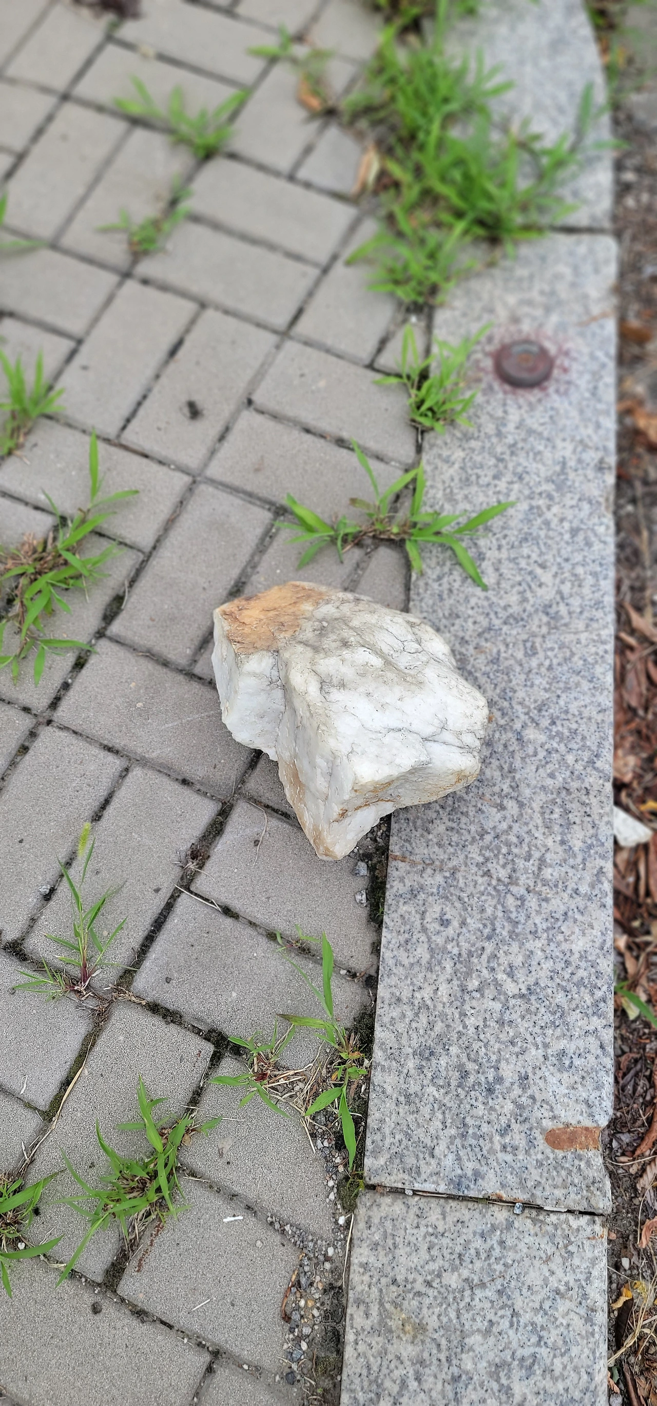 길을 건너서 가다가 큼지막하고 하얀 돌을 발견했습니다. 아이들과 "황금놀이"한 것이 문득 생각났습니다. 아이들이 꼬맹이들일때 길을 걸어다니다가 반짝거리는 돌을 보면 크기불문하고 "황금"이라며 주웠습니다. 그리고, 집에 와서 깨끗이 씻어서 서로 크기자랑하며 놀기도 했습니다. 꼬맹이들이라서 대부분 손가락 한마디정도의 돌들을 고사리손으로 꼭 쥐고 오는 놀이었고요. 길을 지나가 보게 된 돌은 어른 주먹만했습니다.