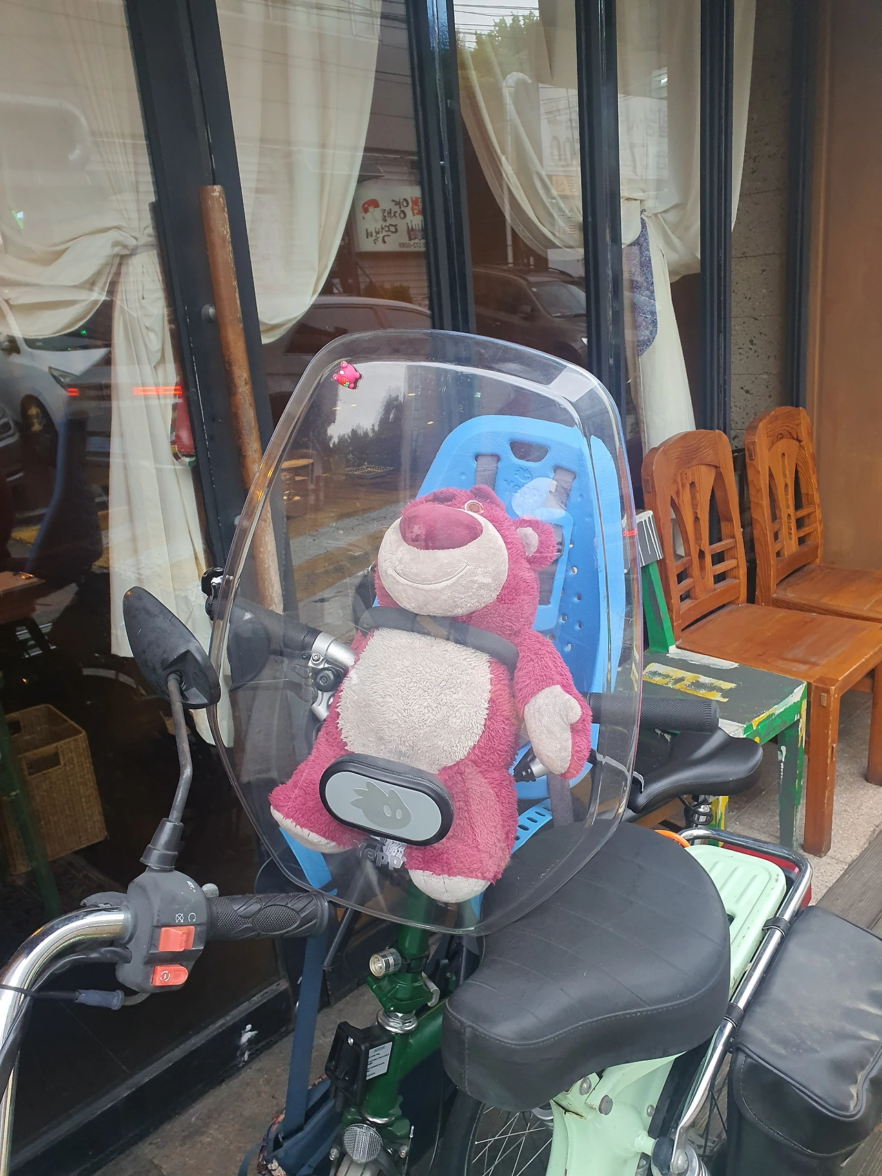 "인생 별거 인나?"라는 표현처럼 "재미 별거 있나?"입니다. 그저 무심히 갖다놓은 인형 하나, 그냥 놔둔 것들이 재미를 주고 즐거움을 나눠주기도 합니다. 아기처럼 타고 있는 인형이 너무 재밌어서 적어 봅니다.