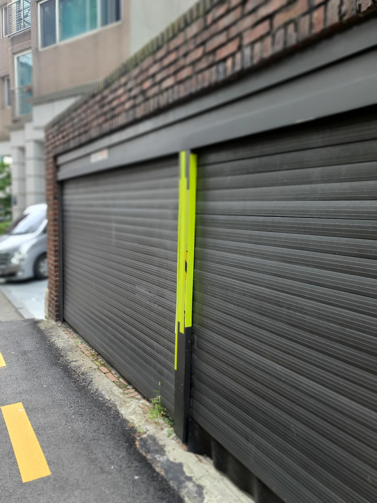 낮에 주차장에 진입은 전혀 문제가 없을 것입니다. 문제는 어둑어둑한 저녁이 되면 주차가 쉽지 않을 것입니다. 어쩌면 이미 몇 차례 사고가 있었는지도 모르고요. 형광 테이프를 붙여놓은 것을 보면서 다른 생각이 들었습니다.