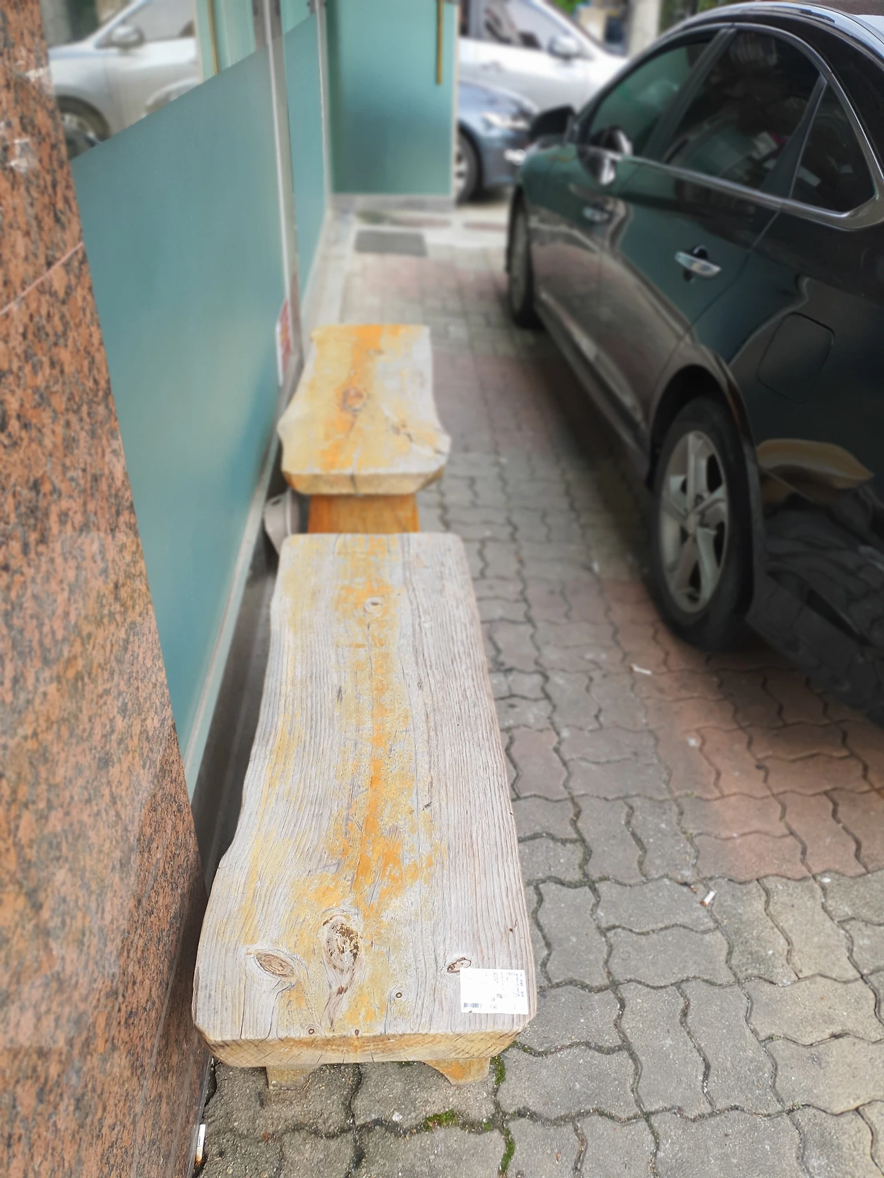 식당 옆 나무벤치는 역할이 다양합니다. 식사 순서 대기, 식후 흡연, 휴식 등등입니다. 그런 용도와는 다른 느낌이 들어서 나무 벤치를 찍었습니다.