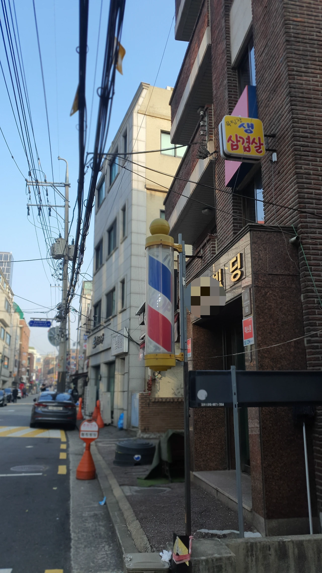 자세히 들여다봤더니 '이발소 삼색등'이 두 개가 붙어서 돌고 있었습니다. 제가 술 취해서 그렇게 보인 줄 알았습니다. 그때서야 두 개가 함께 붙어 있는 곳은 예사롭지 않다고 알게 되었습니다.