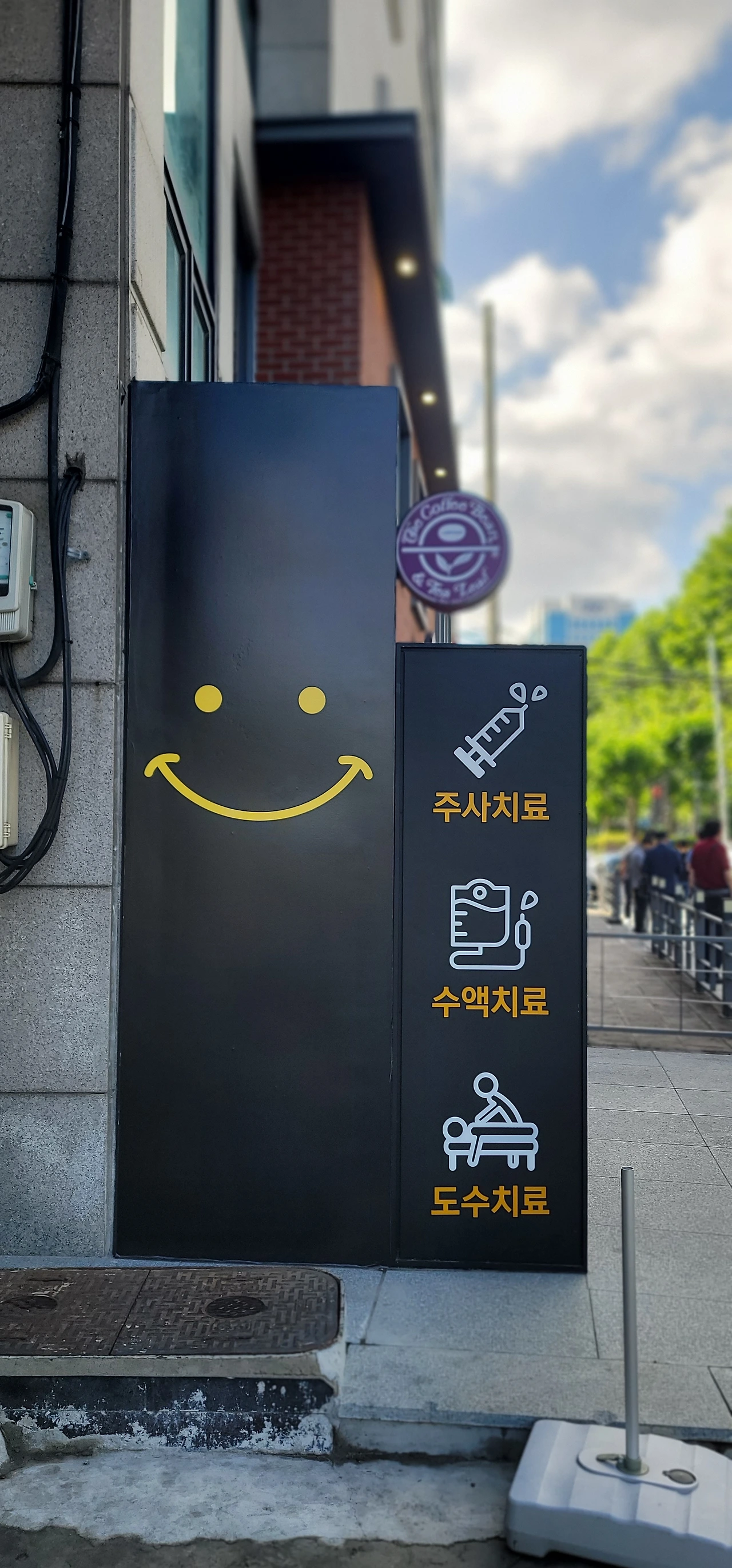 출근길을 걷다가 병원간판을 보고 웃었습니다. 주사, 수액, 도수치료 어느 것 하나 웃으면서 할 수 있는 것이 아니라서요.