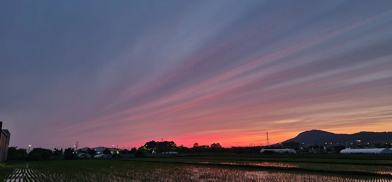 제가 본 노을 중에 가장 다양한 색깔이 자연스럽게 펼쳐져있어서 너무 신기했고 경이로웠습니다. 매일 일상에서 이런 광경을 보니까 노을에 대한 눈높이도 달라진 것 같습니다.