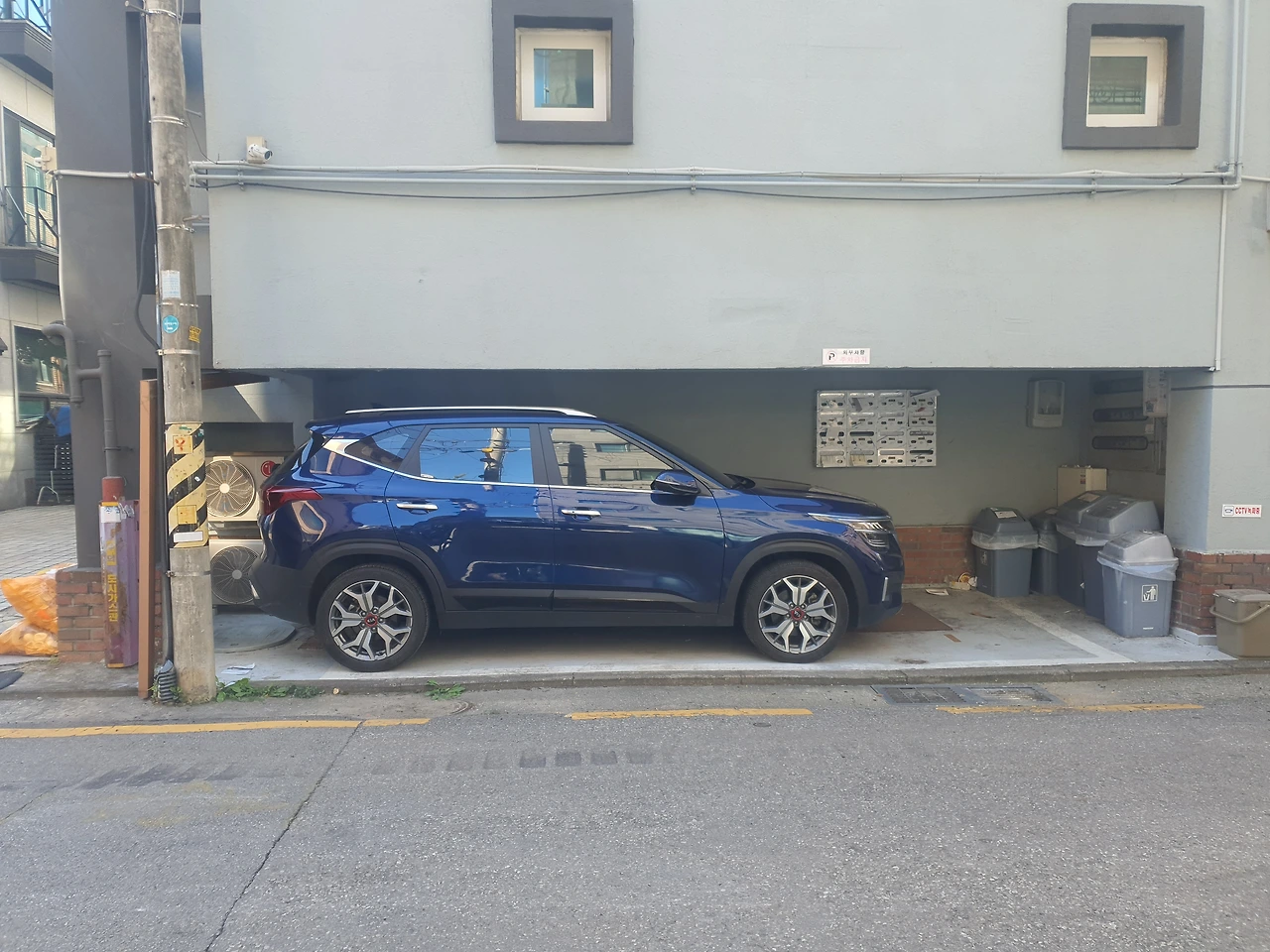 빌라 및 공간이 상당히 협소한데 차량이 정확하고 딱 맞게 주차되어 있었습니다. 차의 크기에 딱 맞는 길이와 높이가 예술이었습니다. 아마 매번 주차하는 차량주인도 상당히 만족스러웠을 겁니다.
