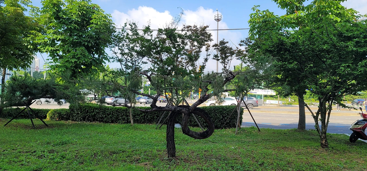 지하철을 내려서 걷다가 구부러뜨린 아니면 구부러진 나무를 만났습니다. 다들 분주하게 걸어가느라 나무 옆을 지나치는데 저는 그냥 지나칠 수 없었습니다.
