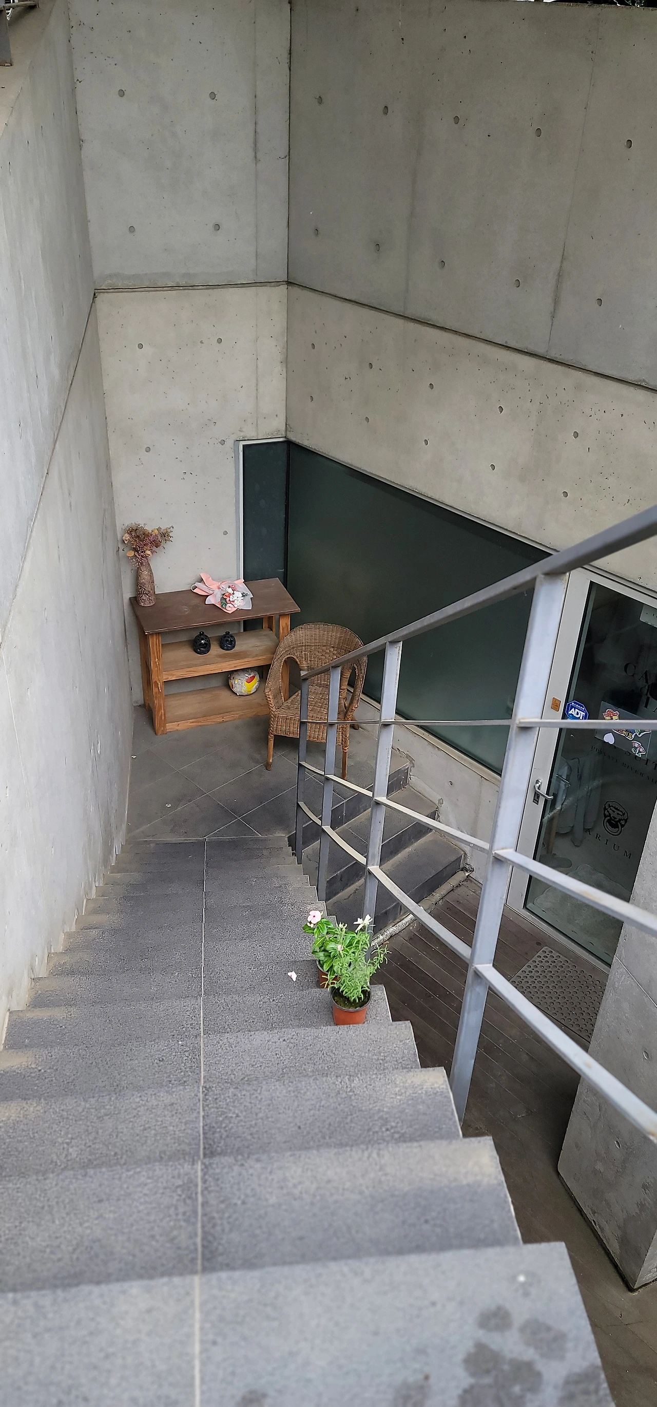 점심을 먹고 골목 골목을 돌면서 걷고 있었습니다. 아름다운 건물의 지하층 입구를 무심코 보다가 계단과 계단이 만나는 지점의 '공간 미학'을 만났습니다.
