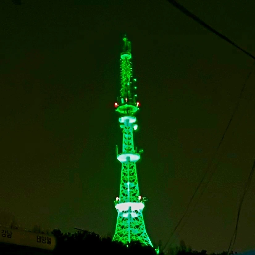 가끔 도시 속의 거대한 랜드마크들을 보면서 사람의 위대함을 느끼기도 합니다만, 밤하늘의 초록 송신탑이 매우 아름다웠습니다.