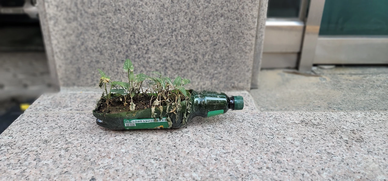 생명살리기라고 표현해본 이유는 큐팩을 반쯤 자르기위한 주인의 노력도 알고 있고, 작은 식물들이 제대로 살도록 물주고 햇빛보게 하는 정성도 느껴져서입니다. 또, 머리아픈 쓰레기로 될 것을 한번 더 사용하고 버리는 주인의 노력이 지구를 살린다고 생각했습니다.