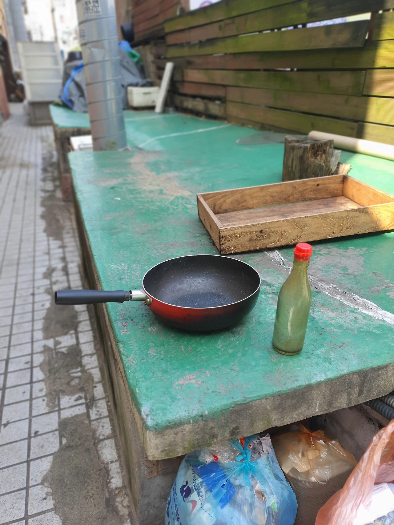 프라이팬과 참기름병.. 생각이 많아지는 풍경이었습니다.
